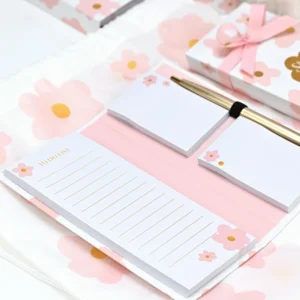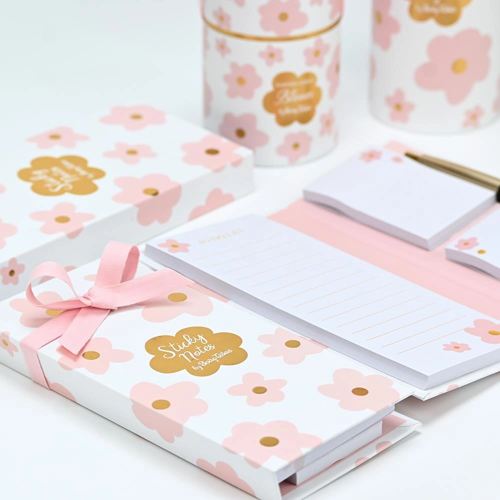 Σημειωματάριο με post it και στυλό pink bloom