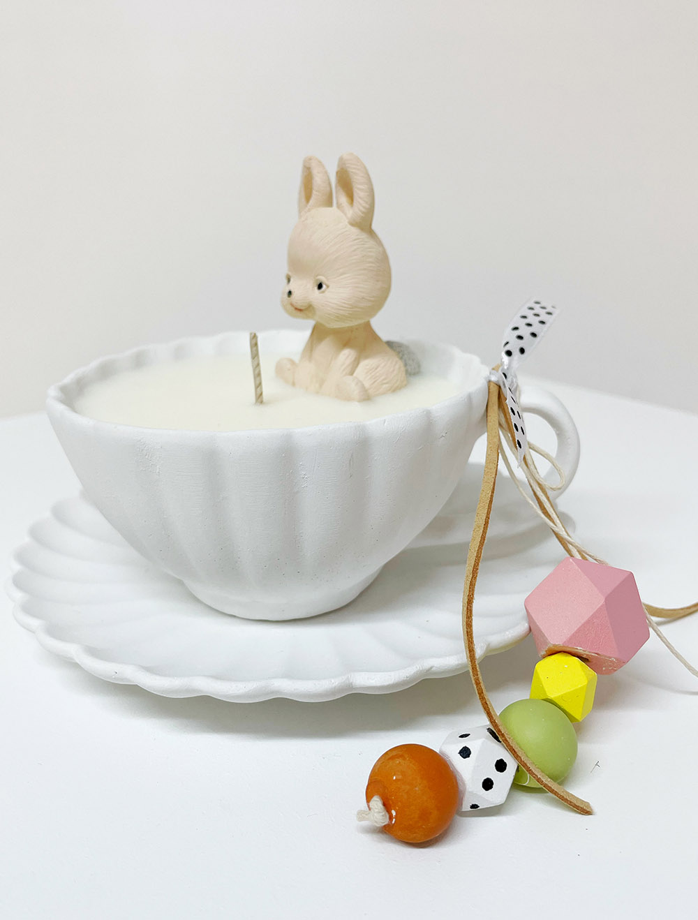 Γλυκό χειροποίητο κερί με τρυφερό κουνελάκι ιδανικό για Πασχαλινό δώρο. Το κερί είναι διακοσμημένο με κορδέλα και ξύλινα στοιχεία, προσδίδοντας μια ζεστή και παιχνιδιάρικη αισθητική. Κατασκευασμένο με προσοχή στη λεπτομέρεια, αποτελεί μια μοναδική επιλογή διακόσμησης αλλά και ένα ξεχωριστό πρωτότυπο δώρο. Από την εταιρεία Έλενα Μανάκου.