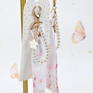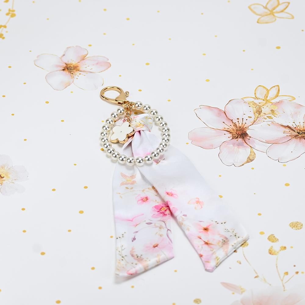 Ένα κομψό charm με μαντιλάκι σε γήινες αποχρώσεις, διακοσμημένο με πέρλες και μεταλλικό λουλουδάκι που συνδυάζει ρομαντισμό και φινέτσα.