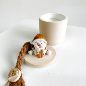 Γούρι-διακοσμητικό της εταιρείας Έλενα Μανάκου σε ψηλό κουτάκι με κερί και θέμα τον Άη Βασίλης, κατάλληλο για χριστουγεννιάτικη διάθεση ή ως συμβολικό δώρο.