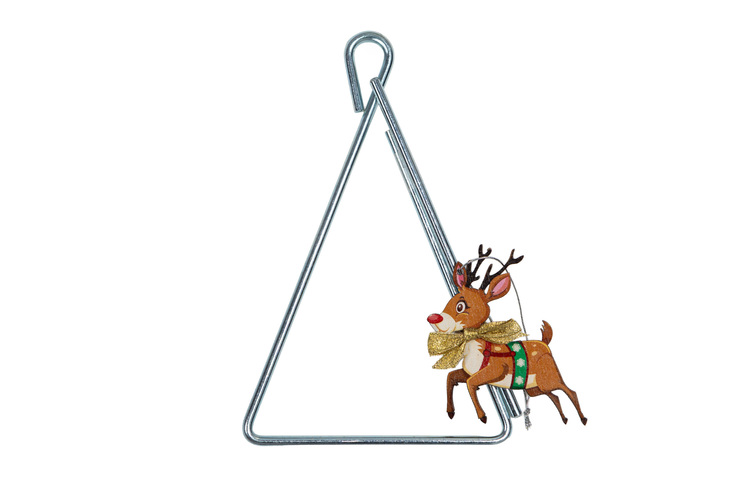 Το κλασικό τρίγωνο για τα κάλαντα αποκτά γιορτινή, χαρούμενη εμφάνιση με αυτό το ιδιαίτερο διακοσμημένο μοντέλο. Κατασκευασμένο από ανθεκτικό μεταλλικό σύρμα, παράγει καθαρό και δυνατό ήχο, ιδανικό για κάλαντα, γιορτινές εκδηλώσεις και παιδικές χριστουγεννιάτικες εμφανίσεις.